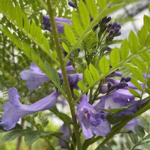 ジャカランダの花が咲き始めました😊 蕾は米粒大だったのに、いきなり花が大きくてびっくりです。