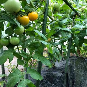 そして、こちらはアイコ組です。 赤と黄色を植えています。 こちらも大幅に葉を落としましたが、 また茂ってきました。 これからの開花が期待できます。 ちなみに、黄色いところがちらほら見られますが、 これは捕虫の粘着シートです。 アイコ組は1カ月で93粒の収穫でした。 こちらも9月からカウントを始めます。 大量収穫を狙って、敢えて脇芽を育てています。