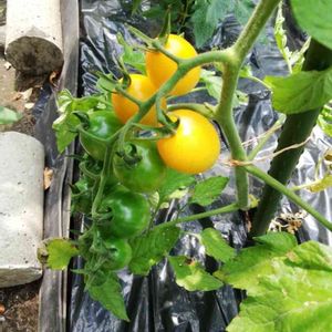 いっぱい連投しちゃって、すみませんでした😢これで終わりにします! モニターの「ぷるるん」はまだやっぱり茶色くなったりで不調です😢今日、お薬かけてみました。 もしよかったらぷるるんの「みどりのまとめ」にアドバイスを~(´>ω<`) 菜園に植えてたイエローアイコが色付いてきたので、いただきました😋 1つは次男が。 もぅ1個は長男と私と半分こ🍅 私以前食べたことある黄色のミニトマトが酸っぱかったので酸っぱいイメージだったけど、甘かったです😋💛
