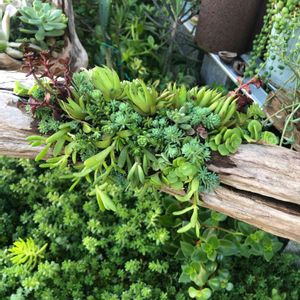 流木寄せ 昨日ネルソルで寄せ植えしたのに、 夜にいきなりゲリラ雷雨☔️ 雨晒しゾーンだから 急いでビニール被せたけど、 今朝見たら崩れかけてたから、 早速手直し 今日は快晴だから、固まるなか? 垂れ下がる系を仕込んでいます。 将来楽しみな寄せ植えです。