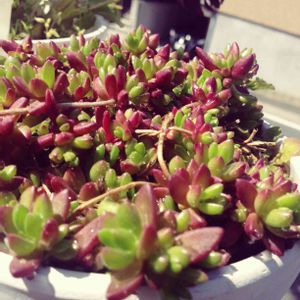 去年の秋に 黒ポットへパラパラしといた セダムたちもモリモリ😄