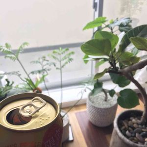 今にも降りそうです🌧 葉っぱたちはそのままに軽くお昼を済ませ🍜 移りゆく時代の流れを肌で感じながら、 プシュー💨したて、出来たての炭酸水で まったりしております。BGMはもちろんBONNIE PINKです。 あ〜、至福の時間😌 …って相変わらずただボーーーっとしてるだけです🤣