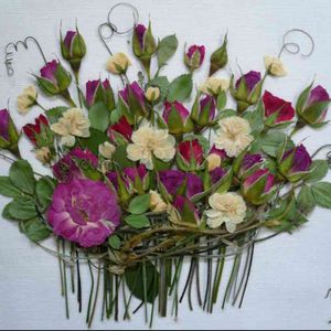 💓花束💓 我が家のお庭で咲いたお花で作成した押し花です✨
