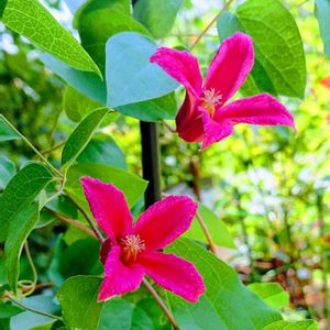 春からの枝を6月下旬に2節残して剪定 ✂️そのあと 節からの新芽と 土の中からも芽が出て ✴️艶やか✨に咲いてくれました🥰