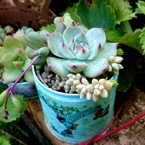 百均でチワワエンシスを見つけて連れ帰りました(о´∀`о)ノさっそく持ち合わせの多肉さんと自作リメ缶に寄せ植え(*´∀`)♪ 後ろのオウレイは、チワワさんに出逢えた嬉しさ余って一緒にお連れした1つです(^-^; あと、メイゲツも一緒に連れ帰りました(о´∀`о)ノ