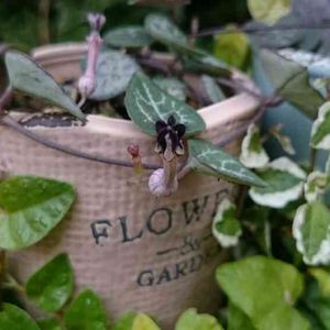 こちらも見切り品ハートカズラ、葉っぱ3枚の瀕死からムカゴ株分けで2鉢にしてここまで復活✨花まで咲かせてくれました〜(*´∇`*)💕 プミラに埋もれる5秒前っ