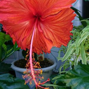 三年目のハイビスカス フラミンゴ🌺 今年3輪目の花です。 「じゃあ、1、2輪目は?」といわれますと…(^_^;))) ちょうど雨の日に咲いて写真が撮れませんでした😭