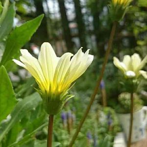 種からのハナビシソウ、咲きました(о´∀`о)ノ 思ったより黄色くない、淡いクリーム色のような… 蕊が金糸玉子みたいでかわゆす(*^-^*)💕