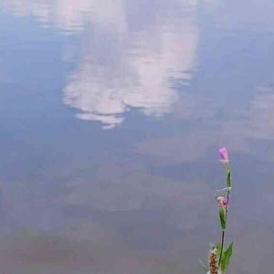 アカバナユウゲショウと、 初夏の雲と電圧塔を映した池 雲も好きで、電圧塔も好き💕 梅雨の晴れ間の一枚😊