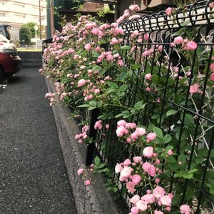 枯れた薔薇載せて済みません〜〜! 前に載せたミニ薔薇群舞です。ピンクから白っぽくなり このように枯れるまで散りません、トゲなし、枝柔らかく、病気虫に強くて、どんどん伸びる元気な薔薇なんです❣️ 実は日に向かって隣の駐車場までいってしまいましたが文句は出ませんでした😅 雨に備えて今日全部切りました!