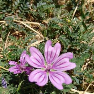 ブルーマロウ🌿 越冬して、今年も花をつけてくれましたヽ(´▽`)/ 3色に変化する魔法のようなハーブティー「マロウブルー」としても有名ですね😊