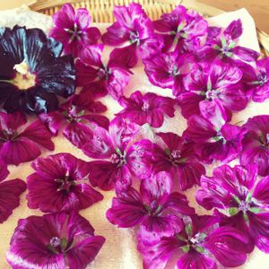 🌸ウスベニアオイ ブルーマロウとも 乾燥花をハーブティーで頂くととっても綺麗なピンクに…… レモン汁を2~3滴