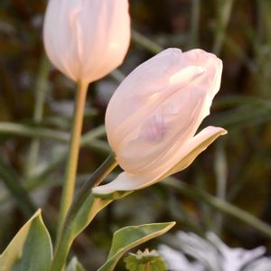「チューリップ」✨🌷 夕方の山下公園⛲️🌸🌼 暗くなり始め、花が閉じていましたが、ソーラ庭園灯の明かりも閉じ込められていました✨🧚♀️ 白基調でピンクの差し色の入っ可愛い色合いだったのに、幻想的な色合いになっています💕 ユリ科 チューリップ属 和名 : 「ウコンコウ(鬱金香)」 全体の花言葉 :「博愛」「思いやり」 赤は「愛の告白」「真実の愛」 ピンクは「愛の芽生え」「誠実な愛」 オレンジは「照れ屋」 パープルは「不滅の愛」 白は「失われた愛」 黄色は「望みのない恋」「名声」