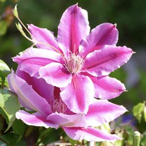 「クレマチス」✨🌸 綺麗な花びらが風に揺れて、とても素敵な表情でした❣️😆 キンポウゲ科センニンソウ属(クレマチス属) 別名 :「テッセン(鉄線)」「カザグルマ(風車)」 花言葉 : 「精神の美」「旅人の喜び」「策略」 クレマチスはセンニンソウ属のツル性多年草のうち、花が大きく観賞価値の高い品種の総称とのことです🧐
