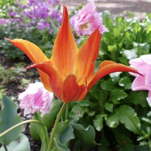 奇抜な「チューリップ」✨🌷(その1) 奇抜な形の花に出会いました😮 ユリ科チューリップ属 別名 :「ウッコンコウ(鬱金香)」 全般の花言葉 : 「思いやり」 赤は「愛の告白」 白は「失われた愛」 ピンクは「愛の芽生え」「誠実な愛」 黄色は「望みのない恋」「名声」 紫は「不滅の愛」