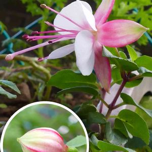 「フクシア」✨🌸 素敵な蕾を見つけ、 何だろう?どんな花になるの? と、気にしていたら横向きに咲く フクシア でした❗️ 色合い、グラデーションが綺麗です❣️😊 🏷「金曜日の蕾たち」に参加します アカバナ科フクシア属 原産国 : 中南アメリカ、西インド諸島 別名 :「ツリウキソウ(釣浮草)」 全般の花言葉 :「つつましい愛」「信じる愛」 ✳︎ 学名の「Fuchsia(フクシア)」は、ドイツの植物学者レオンハルト・フックス(Leonhart Fuchs)の「Fuchs」の部分をとっているとのこと🧐
