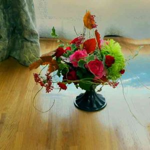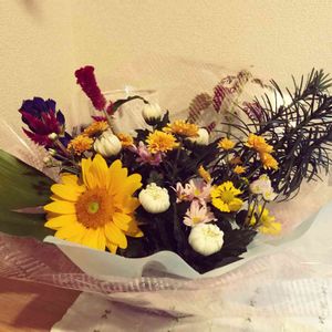 今月のお花🌻 秋感を出す予定が、ヒマワリが可愛くてつい、入れてしまった。 まとまり感がないな😓