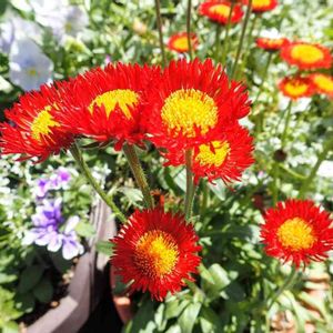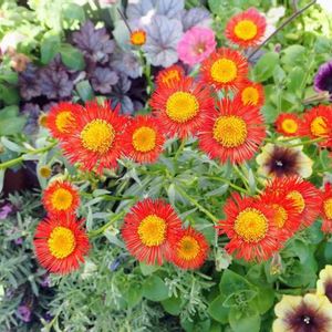 前出の、エリゲロン・オーランティアカスです。アップにしてみました。お花の形は、たしかにヒメジョオンやハルジオンに似ていますね、大きさは直径が倍くらいありますからずっと大きいですね。とても可愛らしい印象のお花です。