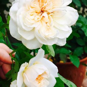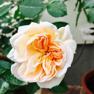 おはようございます(^^) 今朝はグッと冷え込みました。 この薔薇は何でしょう?? 答えは…アリアドネなんです!! いつもは白いバラなのに、急な冷え込みでアプリコットカラーに✨ なんて素敵なんでしょう(*´∇`*)