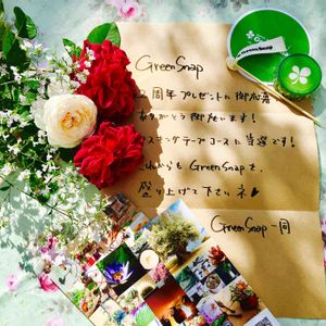 2周年記念の品が当たりました(^O^) 嬉しいです(^^)ありがとうございます✨ 今日は今年最後の夏日!?でしょうか?? 暑すぎて庭に出られず…部屋にこもっております(^-^; 写真撮影のために庭に出たら大汗💦_| ̄|○