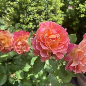 バラ シャルール🌹 素敵な薔薇はたくさんあれど、手は出さない❢って思っていたはずなのに…🤨 ロサオリエンティスさんのシャルールをお迎えしてしまいました🏵𖥧𖧧 ˒˒. 初心者向けだけど、ちゃんと育てられるか不安いっぱいです…😂 【花】 黄色~オレンジ、ピンク、ローズ赤、弁先尖る宝珠弁咲き~丸弁八重咲き、中輪房咲きの花。ティの中香。切花にも向く。 【栽培】 四季咲き性。樹勢は普通、耐病性が高い木立樹形のバラ。地植え・鉢植えのどちらにも適している。夏剪定は普通のタイミングで(関東以西の暖地の場合9月前半から半ば)。樹高はやや低めなので、お庭で植えるなら前方に。トゲの量は標準的。シュート更新は不要。 タイプ0 無農薬でも、株の上部にはほとんど病気が発生しない、優れた耐病性を持つバラ。庭木や草花と同じように、害虫が発生した際にのみ殺虫剤を散布するか、捕殺するだけで育てられる。剪定のたびに殺菌剤を散布すれば、一年を通して美しい葉を維持しやすい。散布のタイミングは、冬剪定後の芽が膨らみ始めた時、1番花開花後、2番花開花後、夏剪定後、秋花が咲いた後の剪定後の計5回。剪定後は株が小さくなるため、作業量やコストの負担を軽減できる。細かなことを気にしなければ無農薬で十分に育てられる、これまでのバラの常識を超えた品種。 【命名由来】 「シャルール(Chaleur)」は、フランス語で熱や暖かさ、ぬくもりを意味する言葉に由来する。移ろいゆく暖色の花色と、おおらかで優しい花姿が、人の心を温めるような存在であることから、この名を授けた。