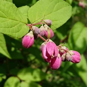 サクラウツギ 品種は残念ながらわからないけど、気に入っています😃今五分咲き位✨ 1cm強の小花、ころころのつぼみ、花びらの裏の筋目が白いワンコの立ち耳のようでラブリー。 去年は枝を刈り込まなかったので、枝が80cmくらいと長く、放射状に伸びています。