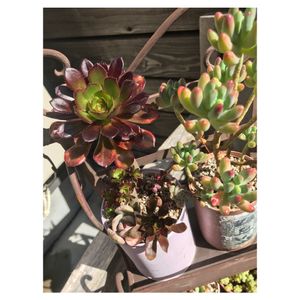昨日Merrybellさんからお迎えした多肉たちです😊 グリーンネックレスもいるのですが、ハンギングにしたら逆光で暗〜い写真になっちゃうので、また今度😅 ハオルチアも黒法師も星シリーズも気になっていたので、元気に育ってくれたら嬉しいです😍💕