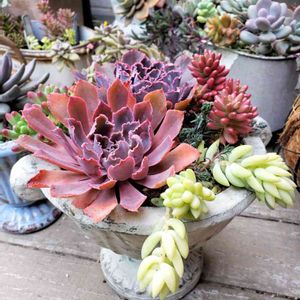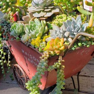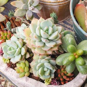 おはようございます💓 こんにちは?かな。 今日は朝から、買いだめしていた多肉たちを寄せ植え。。。3つ完成~\(^_^)/🎶 これはそのうちのひとつ、 木立のパリダを中心にしたもの💠 黄色、薄紫、淡いピンクのトーンで。 パリダ 宝珠 オーロラ ルベンス 見返り美人 リラシナ×ザラゴーザspノバ ペンパディス リリアン デビルスフィンガー(ルスビー×ベビーフィンガー) セダム ヒスパニクム レズリー 頑張ったo(`^´*)❇️