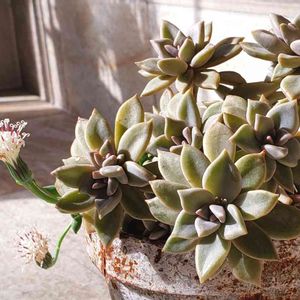 最近、多肉の変化が著しくて picの投稿追い付かない❤️ ((ノ∀`)・゚・。 アヒャヒャヒャヒャ 秋麗のお花…じゃなくて、ピーチネックレスの花 うちのも咲いてた(*^^*)💕 秋麗の色付きいまひとつだけど これはこれでいい色だ✨ このポンポンみたいな花も好き(o’∀`)