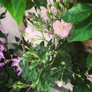 こんばんは🌃🙋 🌹たちが本気モードに入りました。 picはブラッシュノアゼット🌹 薄紙細工のような優しい小輪のバラです☺💕 触るとはらはらと散っちゃうのも風情があります😆✨ 薄いピンクの色合いがうまく伝えられてないpicですが💦 明日は友人が庭を見に来てくれます😋 朝イチで掃除しないとアタヽ(д`ヽ彡ノ´д)ノフタ