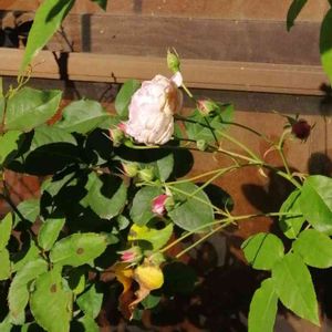 ブラッシュノアゼットがまたつぼみを! しかしもう雪囲いしなきゃいけないから、これは切って室内で楽しみます。 たくさん咲いてくれてありがと〜。