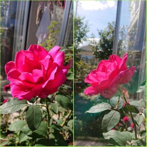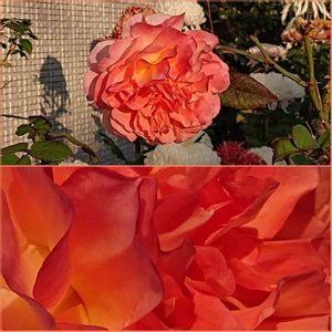 こんばんは🎵。地味な Pic. でおめめを汚します😁。 表とシルエットを観ていただいています。生家の庭に住んでいる😁、推定樹齢五十数年の「クイーン・エリザベス」の株です。Q.E. が作出されたのが、1954年、今年で67歳ですね。おそらく日本で大ブームになった時に植えられたんだとおもいます。この場所は昔、鶏小屋でした。元肥はバッチリですね🎵。一番古い幹は直径8センチ位有ります。花数も圧倒的で、毎年シュートが発生し更新中です。 この Pic. の後、剪定して来ました❗❣️。何時も元気を戴いています。大好きな薔薇🌹さんです❣️❣️。