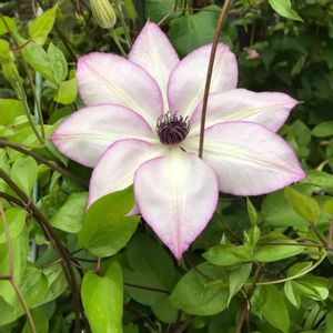 クレマチス🏵フォンドメモリーズ 古株さんなんだけど、植えた当初と周りの植栽が変わり、合わなくなってきちゃった😅 夕飯食べすぎで胃の調子が悪い🌀 庭から摘んできたミントティーを飲んでます🌿 うん。何となくスッキリしてきたよ👍