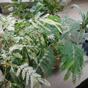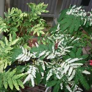 白斑合歓さん。 良かれと思ってベランダ生活を強いた結果‥‥ 白斑の繊細さを思い知る😭💨 ポロポロ落葉して、 何とも気の毒な感じに‥💦 場所を室内へ変更。 葉をバッサリカットして エバさんと並べてあげました。 蕾は健在💦 (‥‥改めてみたら、蕾1つダメになってた😅)