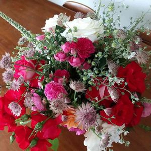 フラワーアレンジメント 盛り沢山の花で。月一回の癒しの時間です。