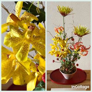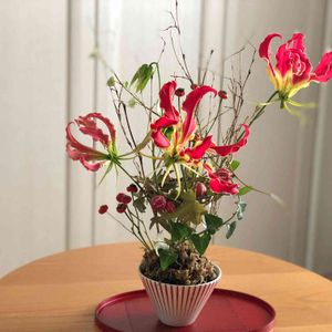 フラワーアレンジ 先日作成したアレンジのリメイク。 ダリアが枯れましたので 代わりにグロリオサを。 火焔のよう🔥 🏷真っ赤な火曜日