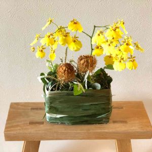 フラワーアレンジ 満開になったオンシを使って 10月の復習を