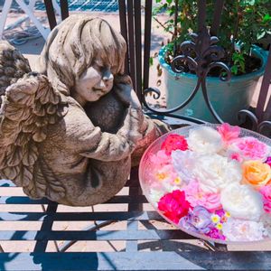 フラワーアレンジ 仕立て直し メインのバラが枯れたので花屋さんへ🏃♀️ 先生のオススメはスプレーバラ🌹 また違った感じになりました