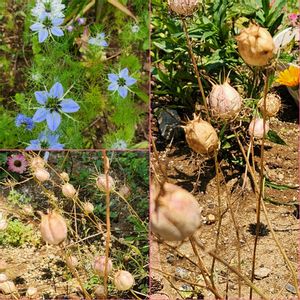 お花が終わって種が出来ました😆 ニゲラとシレネです 来年のこぼれ種のために弾けるのを待ちます