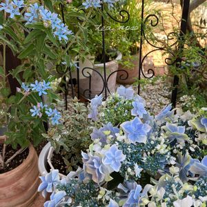 素敵すぎな🩵コラボ 近所の花友さんからいただいて同じ鉢に植えっぱなしの3年目のオキシペタラム‘ブルースター’と、横浜フラワー&ガーデンフェスティバルの展示で釘付けになって先日お迎えしちゃった紫陽花‘銀河’(満開を過ぎたという理由で訳あり特価でした) 2つの鉢の間に置いている子は、リーフがめちゃめちゃかわいい果樹のウグニ(チリグアバ)です。 Instagram tea_rose0910