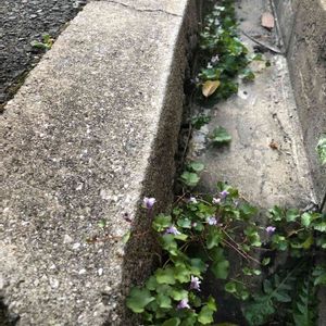排水溝のツタバウンラン うちの近所ではツタバウンランが幅を利かせている