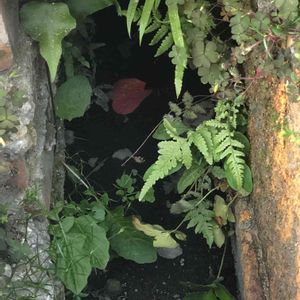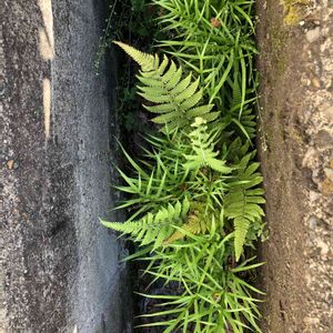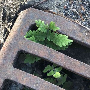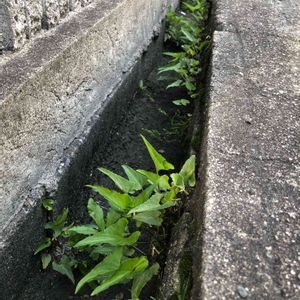 これも側溝の蓋の隙間ちゃん ちょろっと出てるようだけど中では同じ種類であろうシダが茂っていました 詳しい名前は知らないけど住宅街によくいるシダ