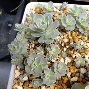 これは、お迎えしたわけではないのですが… my gardenさんのところにあった 「斑入り子持ち蓮華」 です。 これ、うちにある3つの「斑入り子持ち蓮華(子持ち蓮華錦)」のどれとも違うもののようです。 葉の形が違うんですよね。 この葉の形はいわゆる「カスタード」に似ている気がしますが、斑の入り方が違いますね。 (カスタードは中斑、これは覆輪斑) 子持ち蓮華についてはいろいろ調べてみたのですが、違う種類のものが混在していますよね。 自生している地域による変種なのか、園芸品種なのか、それとも、もともとの種類が違うのか…? 先日、コメントに書いたことなのですが、あらためて投稿しておきます。 現在の時点で子持ち蓮華についてわかっていることを書くと… ★普通に出回っている園芸品種の「子持ち蓮華」は、「白蔓蓮華(しろつるれんげ)」と言う別名がある。 葉は丸みを帯びていて、灰色がかった緑色。 ★子持ち蓮華の別名に「レブンイワレンゲ」がある しかし北東北に自生している「レブンイワレンゲ」にはランナーがない模様。 ★「アオノイワレンゲ」の異名が「コモチレンゲ」とする学説が2016年に出ているが、 この「コモチレンゲ」は園芸品種の「子持ち蓮華」とは同一ではないのかも…? しかし「アオノイワレンゲ」はランナーを出すものと、出さないものがあるよう… アオノイワレンゲは、葉色が緑色である。 ★「鏡花」は、知床で採取した子持ち蓮華(詳細不明)の斑入り種。覆輪(葉の外側が白い)斑。 私も持っていますが、まだ小さくて特徴がわかりません。 ★私の持っている「子持ち蓮華錦」の元の品種は不明だが 見た感じ、園芸品種の子持ち蓮華の斑入りではないか?子持ち蓮華に比べると少し葉が細長い。覆輪(葉の外側が白い)斑。 ★斑入りの子持ち蓮華の一種である 「カスタード」 は私が写真を見た限りだと、 黄色い斑が、葉の中に入っていて、葉の形が尖って小型である。 この葉の形は、東北で見られる「コモチレンゲ」(ランナーを出す)とよく似ている。 ★「ゲンカイイワレンゲ」にもランナーが出る いや、調べれば調べるほど、本当によくわかりませんね… 結局何が本当の「子持ち蓮華」なのかがまず特定できないという。 ランナーで増えるタイプのイワレンゲが全部『子持ち蓮華』という名前にされているのかな…? という感じですが… 研究者の方に聞く機会があれば詳しく聞いてみたいです…、
