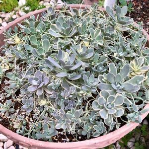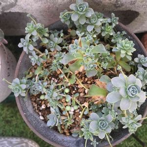 斑入り子持ち蓮華さん✨ 後ろから見たら小さなお子ちゃまがワッサワサ✨✨ 早く移植しなきゃ😆