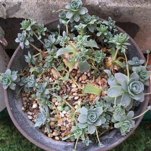 多肉ラボ©メンバーの皆さんへ。 「ICHIKO☆」さんのリフォローがまだの方は至急リフォローをお願いします。 オロスタキス属とヒロテレフィウム属の寄せ鉢🌱 冬に冬眠する子たちをまとめたドデカい14号テラコッタの寄せ鉢。この鉢は露天に放ったらかしで冬越し出来るようにそんな子ばかりを寄せました。名付けて「冬眠鉢」😅💦こんなモジャモジャになる予定じゃなかったんじゃ~(ㅇㅁㅇ)!!!!!!! 時間を見つけて解かにゃならんと思うんですけど、解くだけで良い?🙄ランナーの先っぽをカットしても、もう育てる場所がないしなぁ😱 「たっちんの○○」タブをタップでこの子たちの生長記録のみどりのまとめが簡単に見れます😊🎵 「多肉ラボ©」参加のお申し込みは、1/17のブロンズ姫の投稿からお願いします🤗🌱
