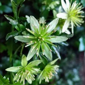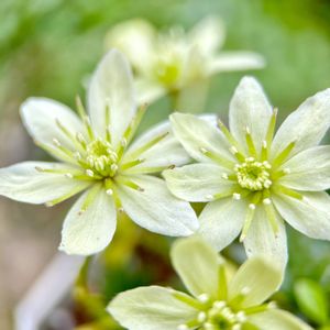 クレマチスピクシーの 鉢植え、満開✨🤍🌼 あちらこちらで 見かけます。