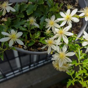 クレマチス ペトリエイ✨ 七分咲きかな🎵 追記しました。 間違えてます🙏 この子も旧枝咲きとのことで、小ぶりのロングポットで切らずに垂らす感じに💕 去年、お迎えした時には花がほぼ終わっていたため、ちゃんと咲いている姿を見るのに1年近く待ちました😂 待った甲斐があったわ😍 ビューティフォー❣️ 老眼レフ使用のためピントが・・・💦 追記 この子、過去のまとめを見直したらピクシーだったようです(〃ノωノ)ハズカチィ❤ 私の記憶も老眼レフでした💦