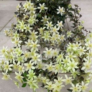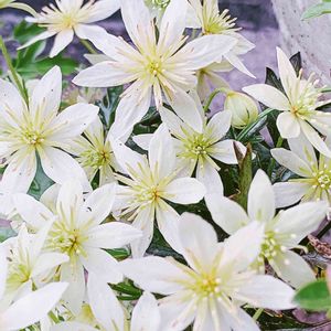 下のセダムと比べたら大きさが分かると思いますが、とても小さな春咲きのクレマチスです🤍🤍 昨年秋に迎えた苗の時は、これ程小さな花が咲くとは思いませんでしたが、クリームがかった白い小さな花が密に咲く姿も可愛くて良かったです✨🤍🤍