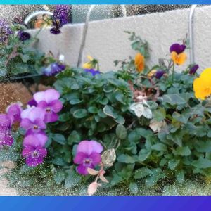 スリットバスケット🌸 ビオラがモリモリになりました🍀 葉牡丹に雨の雫が溜まって綺麗です✨