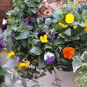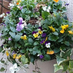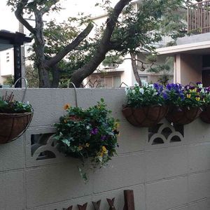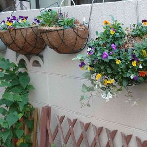 《ハンキング》 ビオラは大きくなりました✨ フリフリパンジーも、ハンキングにしました✨ 先日、作った スリットバスケット も順調です💜